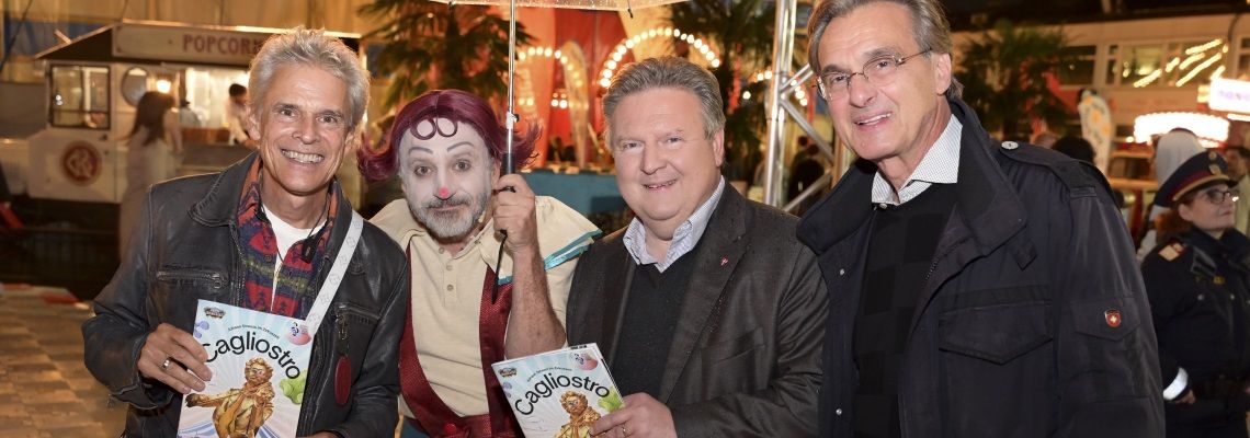 v.l.n.r.: Thomas Brezina, Roncalli-Clown, Bürgermeister Michael Ludwig, Roland Geyer © Stadt Wien/Christian Jobst