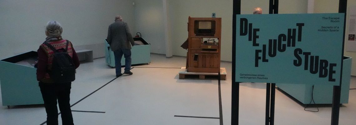 Über eine verborgene Treppe unter einem Kleiderschrank erreichbar, ausgestattet mit einer kleinen Küche und einer modernen Musikanlage, diente der Raum als Rückzugsort. Für längere Aufenthalte ungeeignet, vermittelt die „Fluchtstube“ dennoch ein beklemmendes Bild der psychischen Nachwirkungen der NS-Verfolgung.