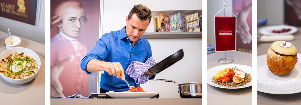 Wolfgang Amadé Mozart war ein Genussmensch, wie Interessierte derzeit in der Sonderausstellung "Mozart bei Tisch" im Mozarthaus Vienna, einem Museum der Wien Holding, erfahren können. Nun kocht der internationale Profikoch Gerhard Brugger an jenem Ort groß auf, an dem Mozart tatsächlich gelebt, gearbeitet und natürlich auch gegessen hat.