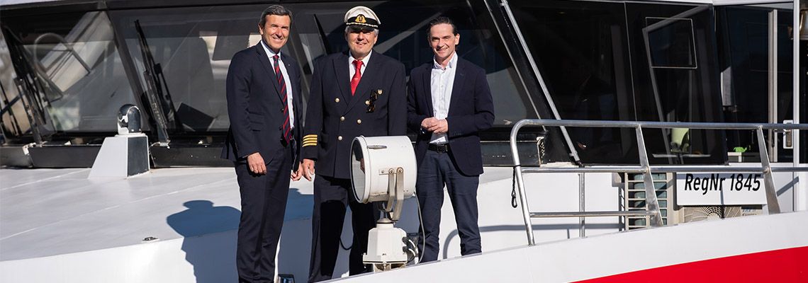 „Nach den Winterfahrten Anfang März startet der Twin City Liner heute in seine reguläre Saison. Unseren Passagier*innen werden in der Saison rund 1.200 Fahrten zwischen Wien und Bratislava angeboten. Durch den Einsatz der neuen PV-Anlage an Bord sorgen wir für einen umweltfreundlicheren Betrieb des Twin City Liners. Denn rund 40% des Strombedarfs wird in Zukunft aus Solarenergie gewonnen“ erklärt Mag. Reinhard Karl, Generaldirektor-Stellvertreter und Kommerzkunden-Vorstand der Raiffeisenlandesbank Niederösterreich-Wien.